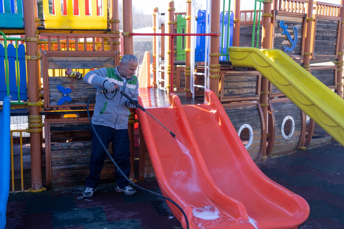 Havaların ısınmasıyla birlikte vatandaşların özellikle çocuklarıyla birlikte vakit geçirdiği park ve yeşil alanlarda temizlik çalışmaları hız kazandı. Gölbaşı Belediyesi ekipleri, ilçedeki parkları daha temiz ve güvenli hale getirmek için kapsamlı bir çalışma başlattı. Bu kapsamda Alparslan Türkeş Parkı ve Atatürk Sahil Park’ta bulunan oyun grupları ile park alanları belediye ekipleri tarafından detaylı şekilde temizlendi. Oyun grupları tazyikli suyla yıkanarak hijyenik hale getirilirken, park içerisindeki yürüyüş yolları ve ortak kullanım alanları süpürge ve üfleme makineleriyle temizlendi. Temizlik çalışmalarının yanı sıra ilçedeki birçok parkta çocuk oyun grupları da yenilenerek daha güvenli ve modern hale getirildi. Çocukların güvenle oyun oynayabileceği alanlar oluşturulurken, ailelerin de daha temiz ve düzenli ortamlarda vakit geçirebilmesi hedefleniyor.
